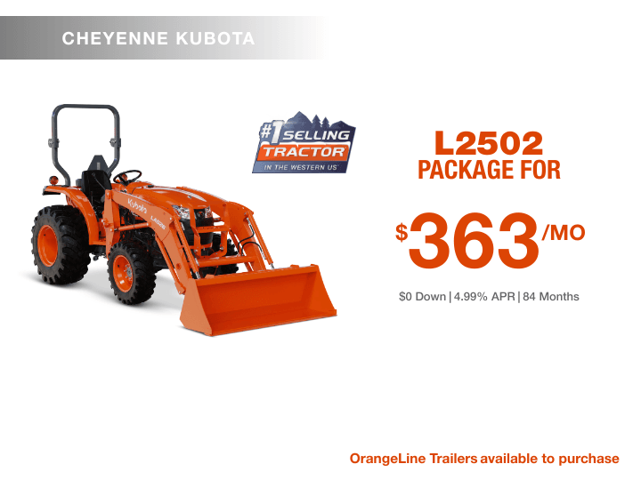 If you're looking for quality equipment and exceptional services provided by trained experts, you've come to the right place. At Cheyenne Kubota, we pride ourselves on matching each customer's unique needs with the Kubota that will serve them best. We're glad you're here, where you can check out our inventory, order parts, schedule a service appointment or simply give us a call at 307-637-0609 and let us know how we can help you.